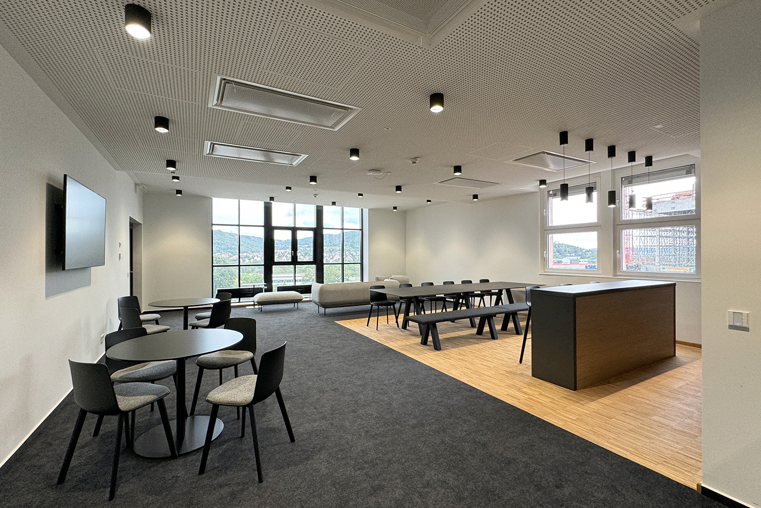 Die Sanierung 2023/24 verfolgte das Ziel, Bestand und Innovation zu verbinden: Tragstrukturen wurden erhalten, die Fassade respektvoll überarbeitet, und im Inneren entstanden offene, kommunikative Arbeitswelten, die ZEISS bereits vor Fertigstellung des gesamten HTSJ erproben kann. Damit fungiert Bau 20 als Pilotprojekt, in dem moderne Arbeitskonzepte in einem industriellen Rahmen getestet und räumlich übersetzt werden.